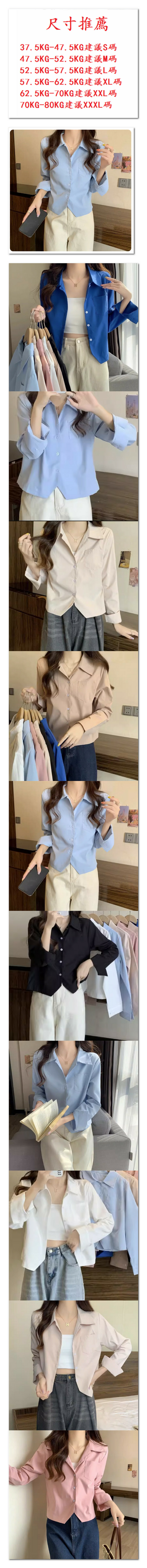 新款短款長袖襯衫(天藍色 尺碼:S-3XL)(下單後請聯絡客服確認發貨尺碼)