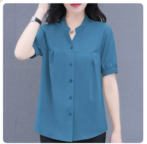熱賣短袖雪紡襯衫(藍色 尺碼:S-3XL)(下單後請聯絡客服確認發貨尺碼)#