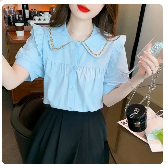 熱賣短袖雪紡襯衫(藍色 尺碼:S-3XL)(下單後請聯絡客服確認發貨尺碼)