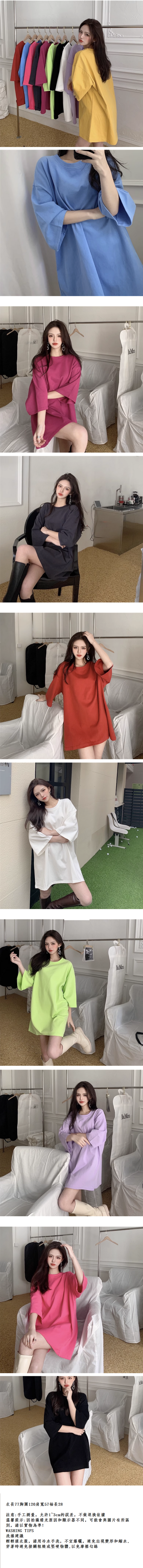 爆款短袖長款基礎款寬松圓領T恤(熒光綠 )(尺碼:均碼)