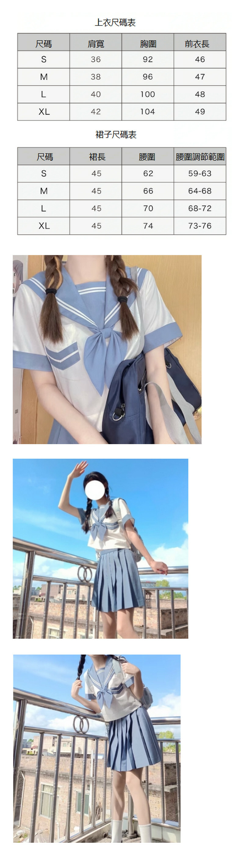 熱賣短袖水手製服裙套裝(藍色)(尺碼:S-XL)(下單後聯絡客服確認發貨尺碼)