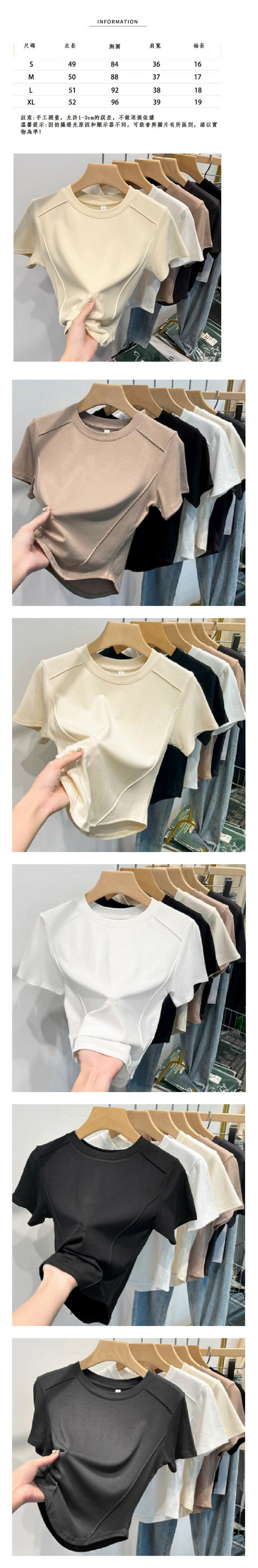 熱推洋氣正肩短款短袖T恤(黑色高品質)(尺碼:S-2XL)(下單後聯絡客服確認發貨尺碼)