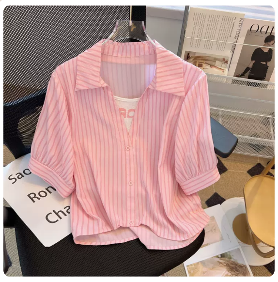 熱賣短袖雪紡上衣(粉色 尺碼:S-3XL)(下單後請聯絡客服確認發貨尺碼)