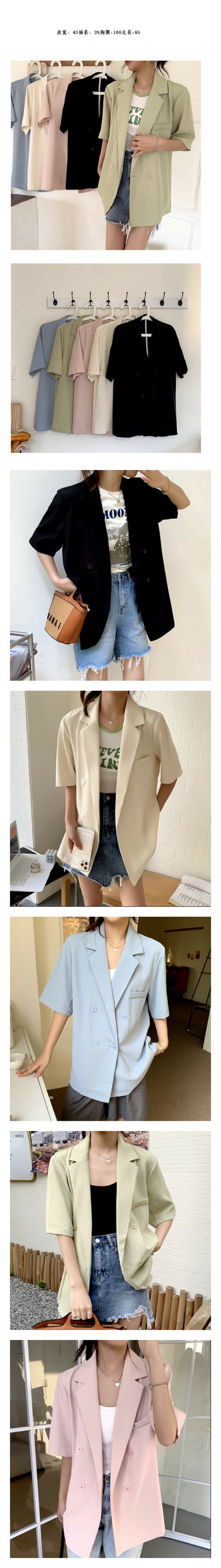 激抵正肩短袖寬松休閑氣質小西裝外套(黑色)(尺碼:均碼)