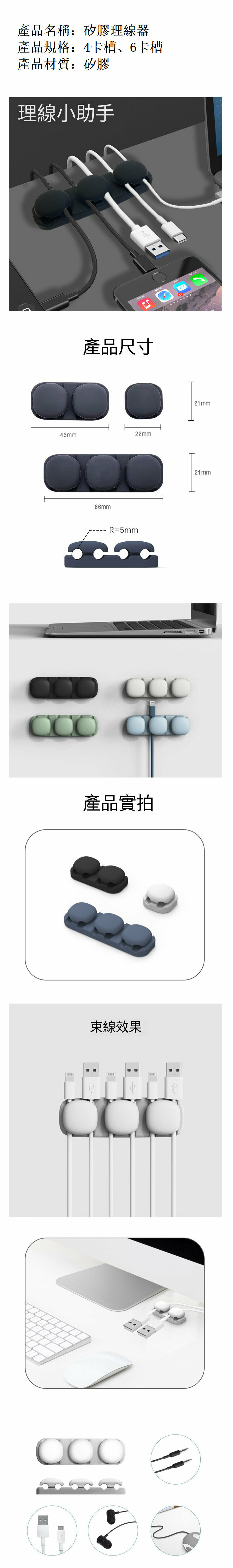 新款矽膠充電線收納器 理線器 電線收納固定器 數據線收納纏線整器 集線器【6孔槽-黑色】