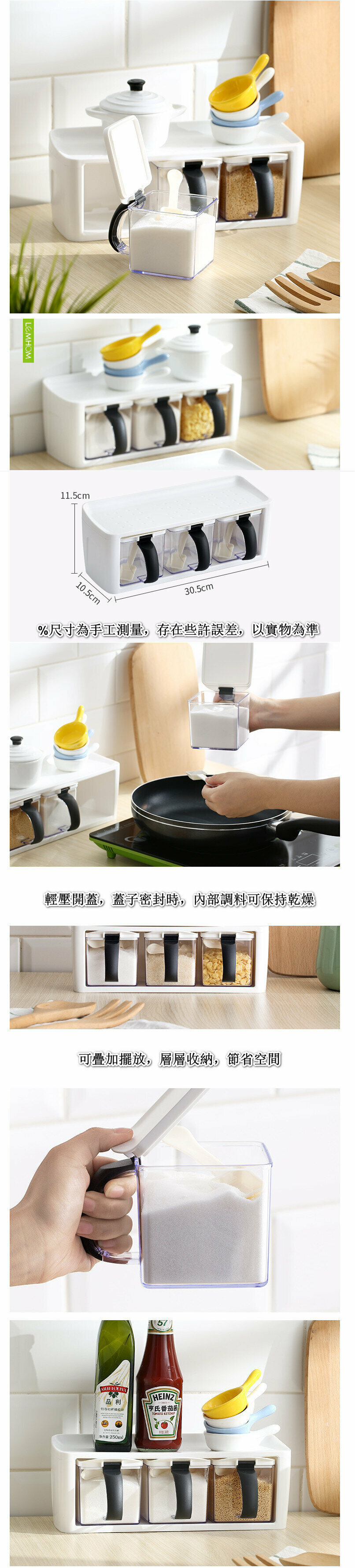 新款簡約3格調味盒 3格日式可疊式廚房套裝調味架 三格鹽罐 糖罐 家用塑膠佐料瓶 調料罐