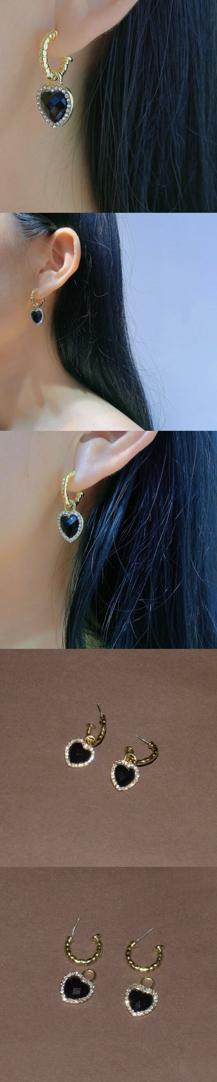 簡約黑色愛心銀針耳環