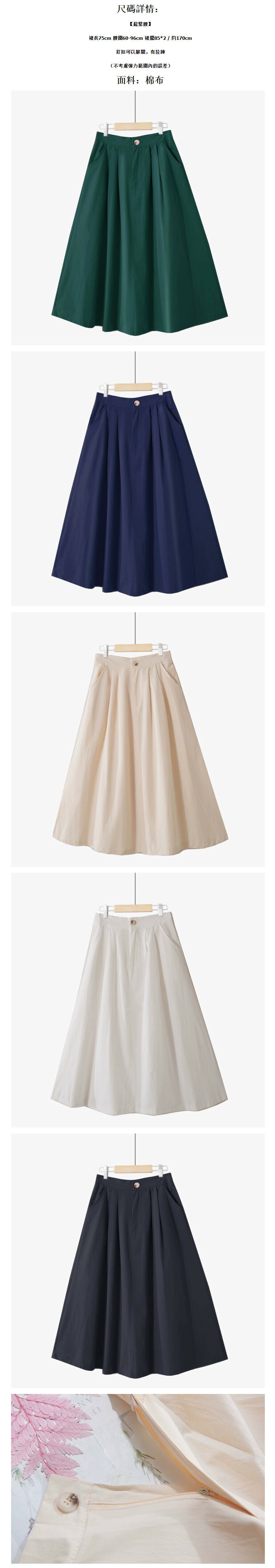 激抵簡約紐扣口袋半身裙【淺杏-均碼 鬆緊腰】