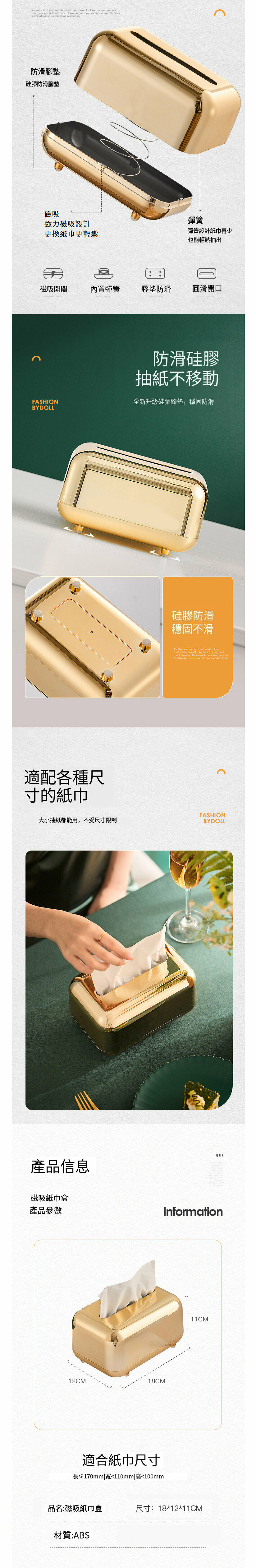 爆款簡約電鍍磁吸紙巾盒 | 抽紙盒 (電鍍金色18*12*11cm)