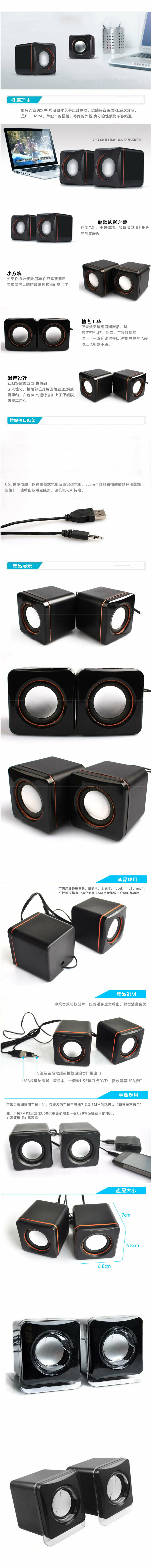 爆款簡約小方塊播放器迷你小音響(一對 黑色款)