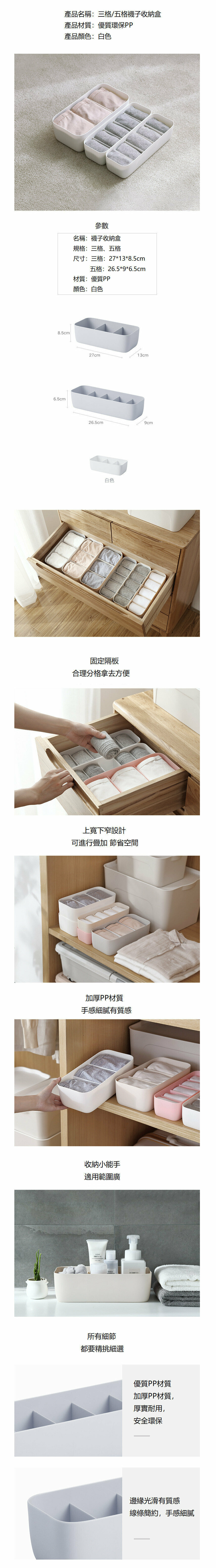 熱賣(單個裝)可疊加多格收納盒 分格衣物櫃桶整理盒(五格白色)
