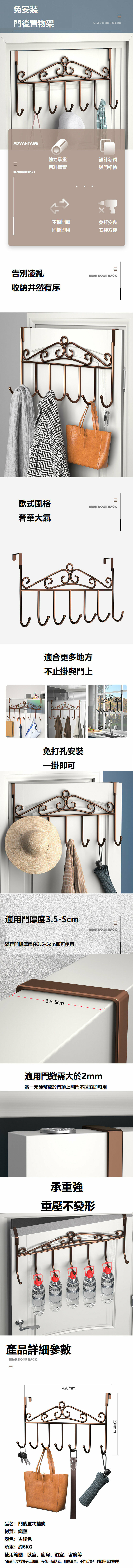 熱賣[單個裝] (7鈎/古銅色) 鐵藝門背衣物掛架