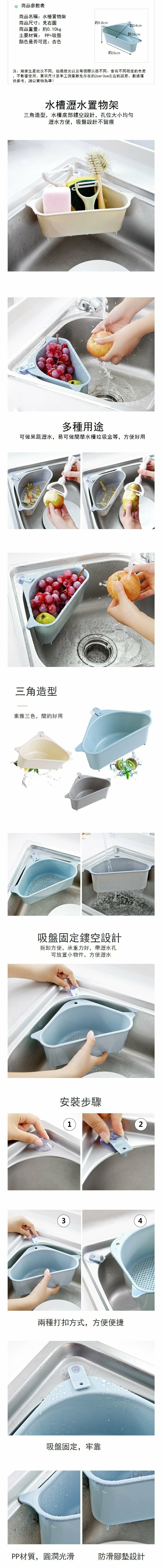 熱推水槽吸盤三角掛架瀝水架(杏色)