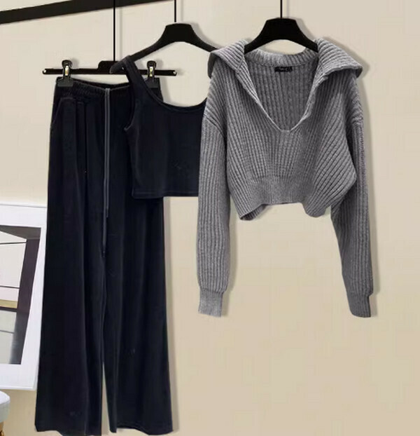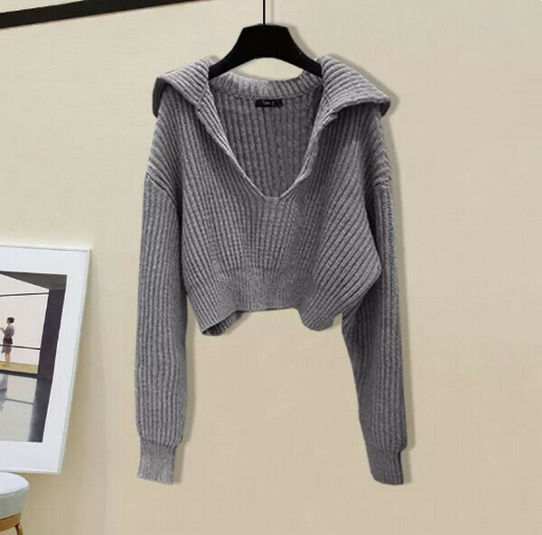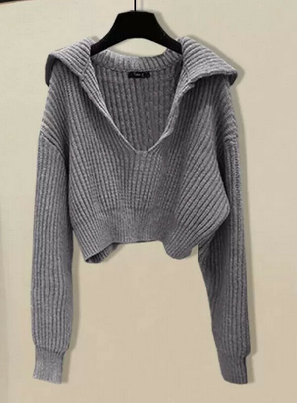 激抵遮肉顯瘦針織毛衣#單件(灰色)【M-4XL碼】【下單後聯系客服確認尺碼】】