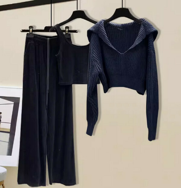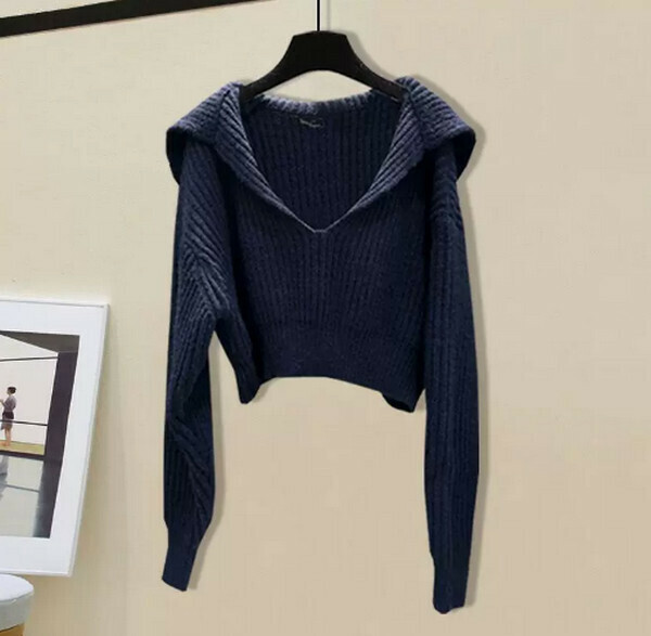 激抵遮肉顯瘦針織毛衣#單件(藏青)【M-4XL碼】【下單後聯系客服確認尺碼】】