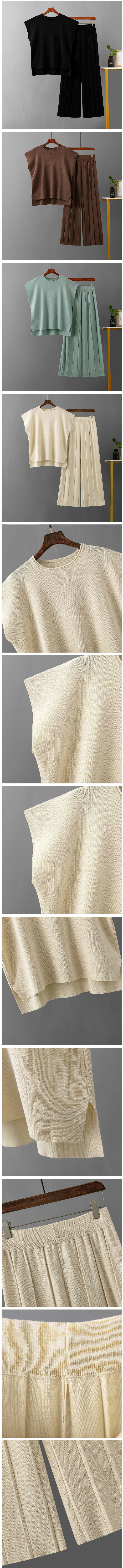 新款氣質純色無袖針織衫套裝(均碼 上衣+褲子 黑色)