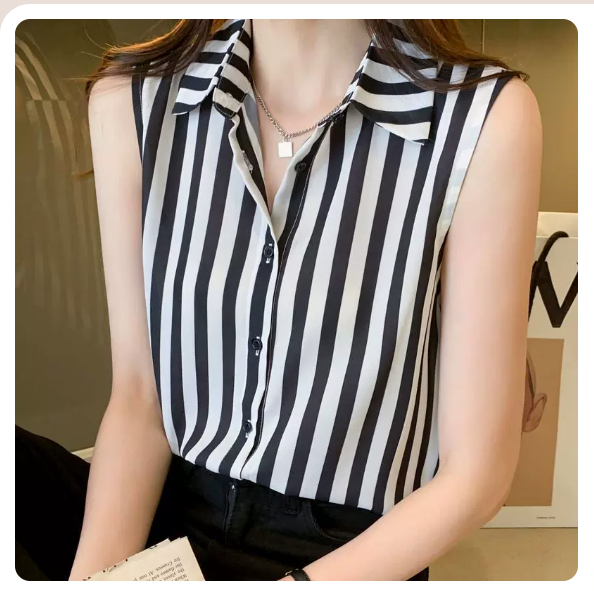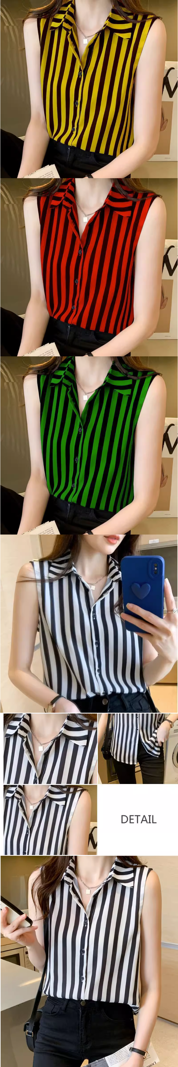 熱推無袖背心條紋雪紡襯衫(黑色 尺碼:S-3XL)(下單後請聯絡客服確認發貨尺碼)