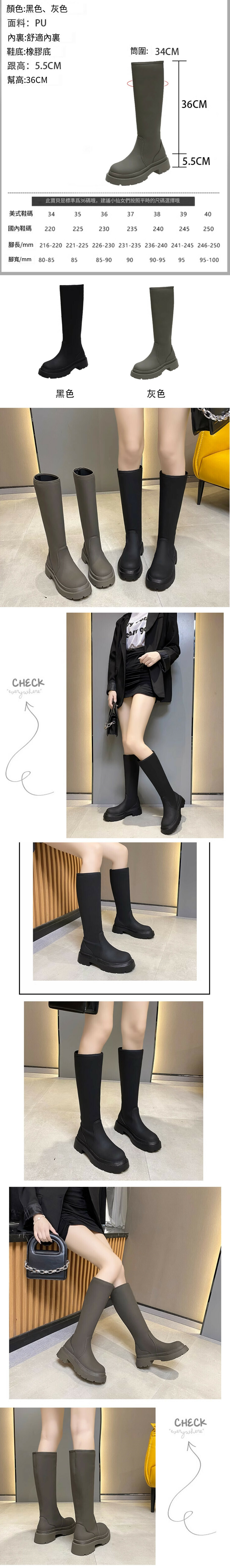 顯瘦粗跟高筒靴