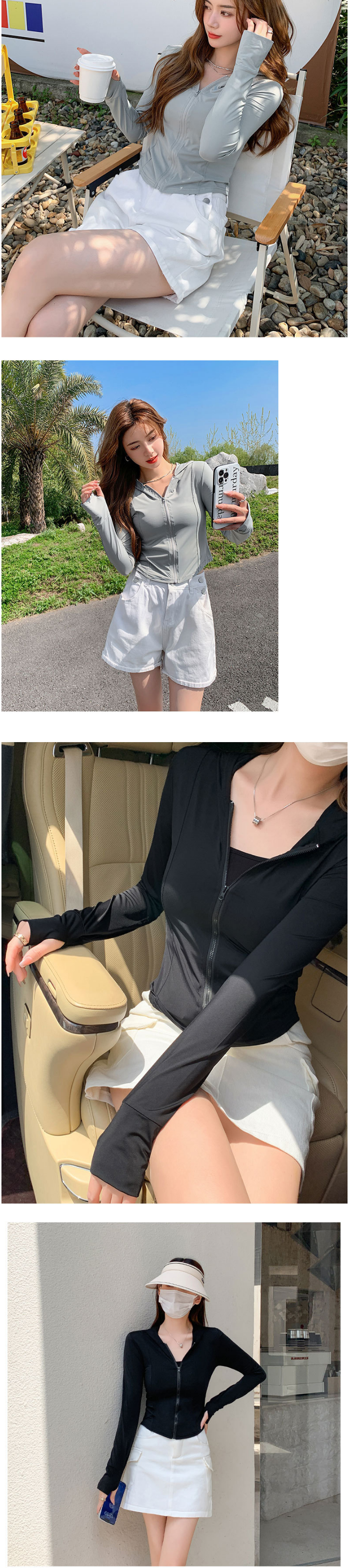 熱賣修身冰絲連帽防曬衣(雲紗白)(尺碼:S-L)(下單後聯絡客服確認發貨尺碼)