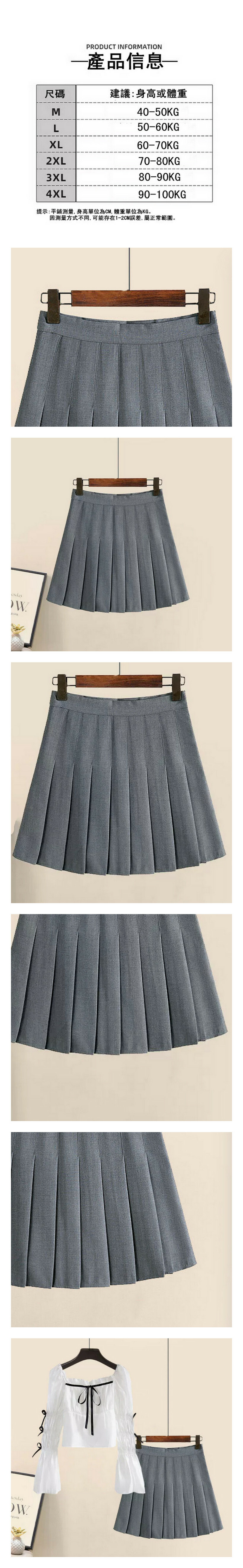 熱推顯瘦百褶裙-短裙單件(灰色)(M-4XL碼) (下單後聯系客服確認尺碼)