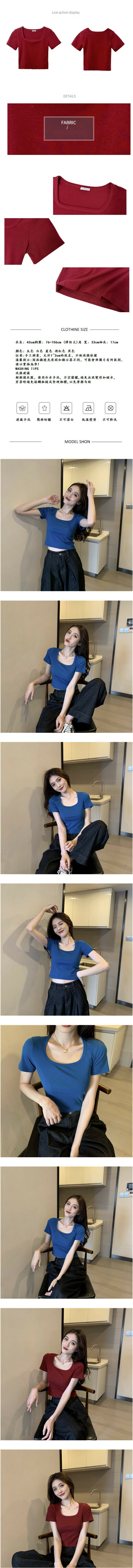 熱賣修身顯瘦復古小心機短款露臍方領T恤(藍 色 )(尺碼:均碼)
