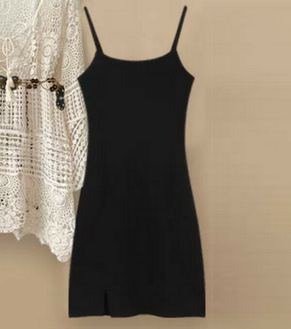 熱推吊帶連衣裙#單件(黑色)(M-4XL碼) (下單後聯系客服確認尺碼)