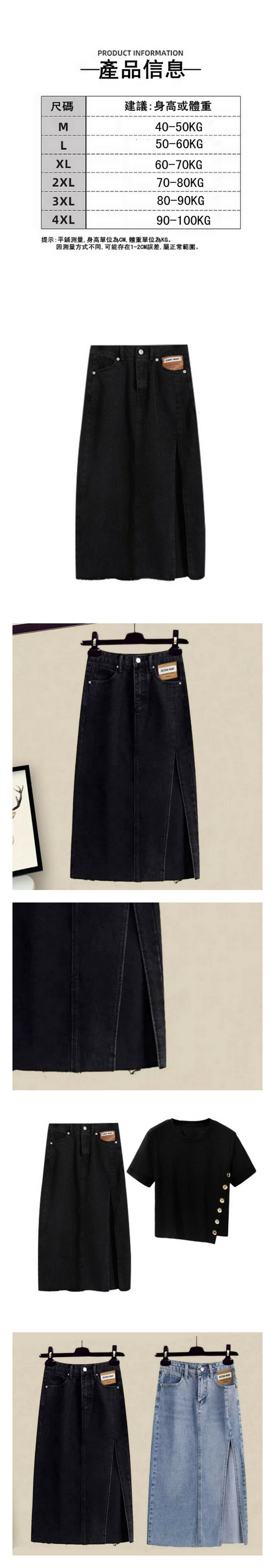 熱賣開叉牛仔半身裙#單件(黑色)(M-4XL碼) (下單後聯系客服確認尺碼) #