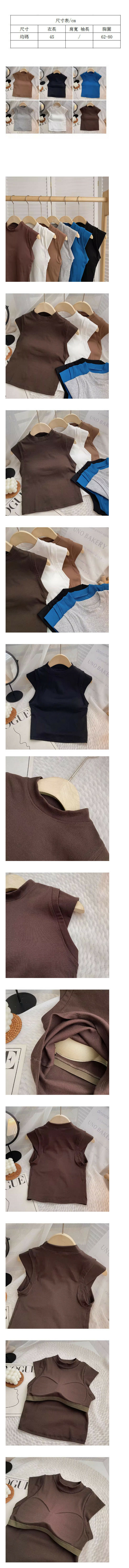 熱賣小飛袖半高領帶胸墊背心(淺花灰)【均碼】