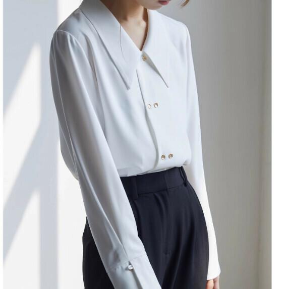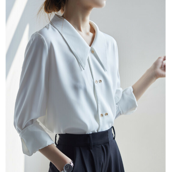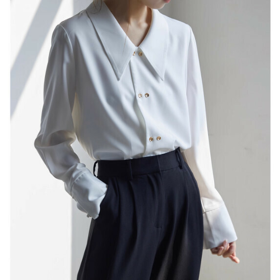 熱推小尖領長袖襯衫春秋(白色【S_L碼】(下單後聯繫客服確認發貨尺碼)】