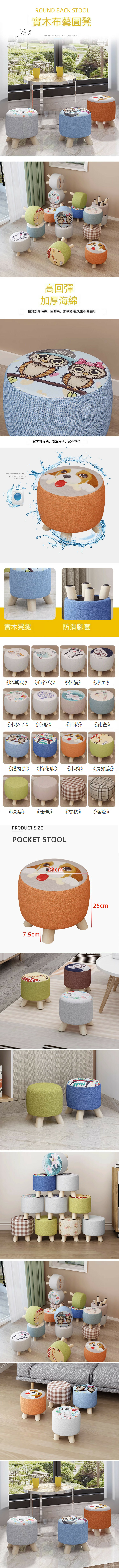 爆款實木布藝小凳子【20高四圓凳(薄)梅花鹿】