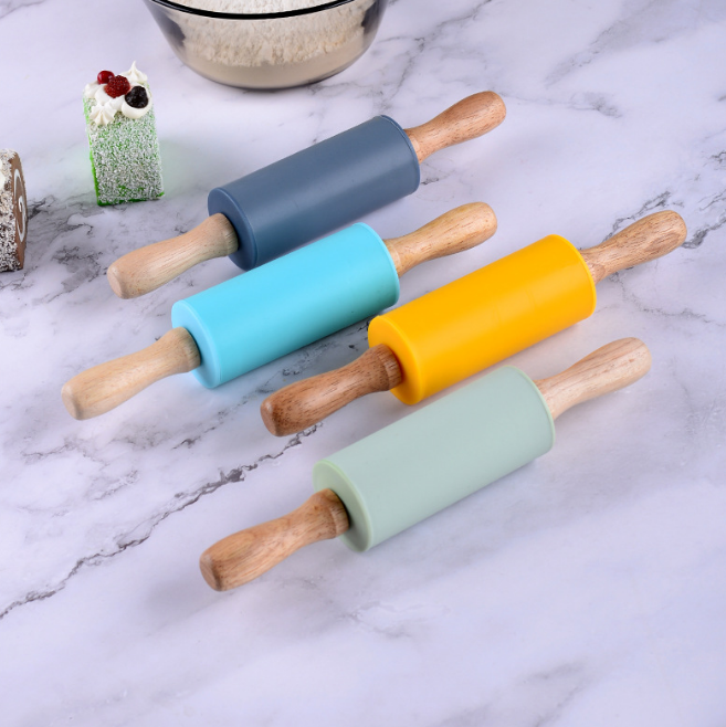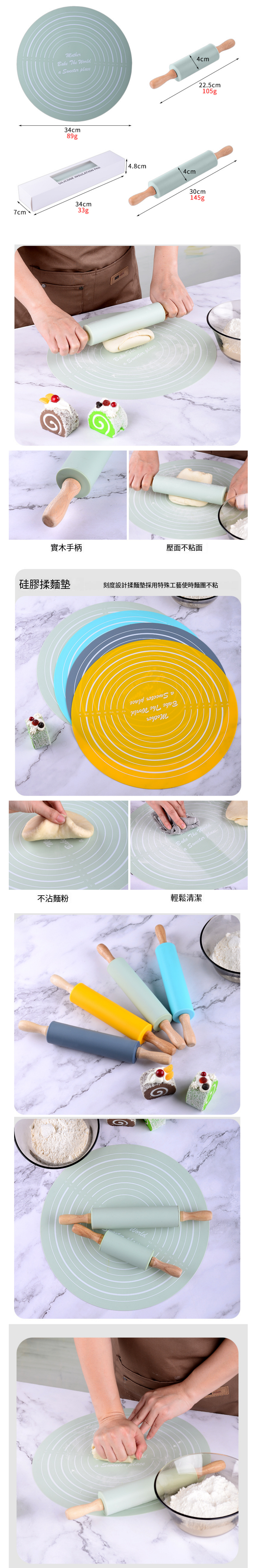 熱賣實木柄滾軸矽膠擀面仗套裝(中號灰色套裝)