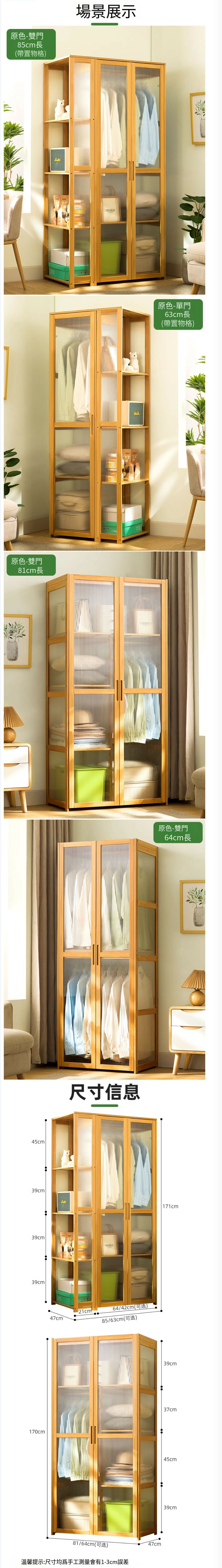實木衣櫃--臥室櫃,置物架【透明門-原色】(加深寬度47cm)雙門81長x170高cmx1件