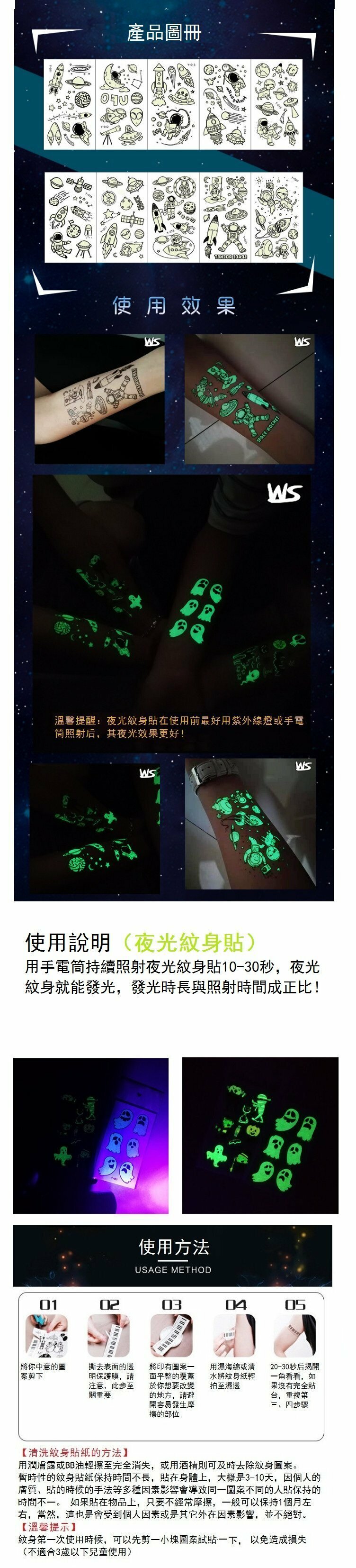 熱推太空飛船夜光兒童派對Tatoo紋身貼紙(Y-011 單張6*10.5CM)