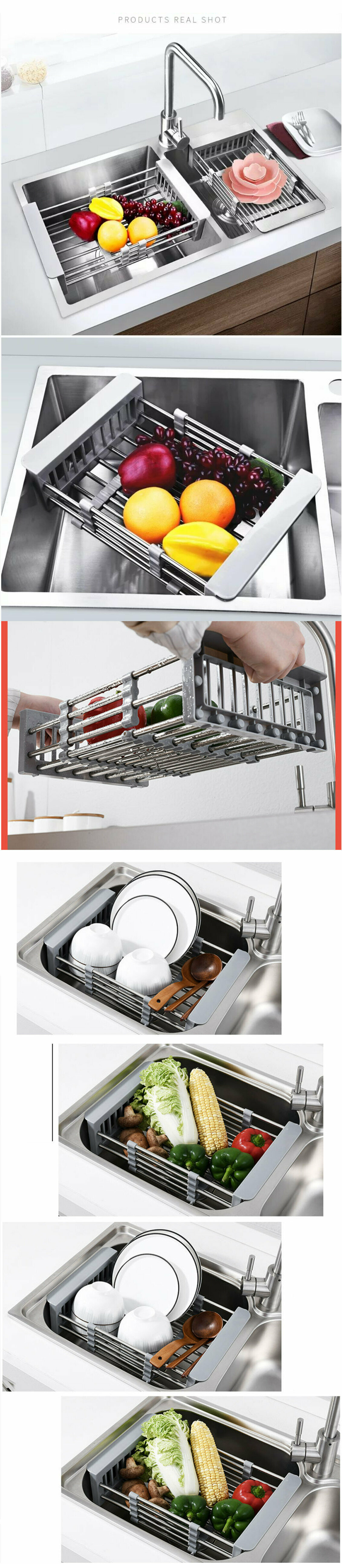 激抵[特價品]可伸縮水槽置物架瀝水籃(小號灰色)(微瑕疵 介意勿拍)