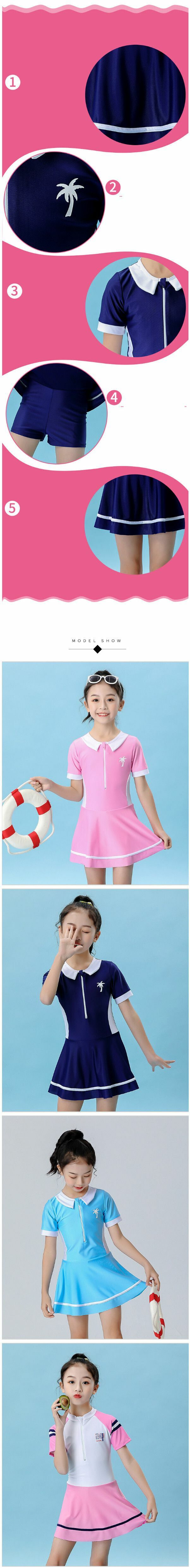【特價品】兒童連體式泳衣【L碼】【淺藍色(11502)】