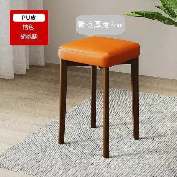 【特價品】舒適實木軟包方板凳餐椅(桔色-PU皮+胡桃腿)(尺寸:44*30*3CM厚度 陳列品 有小瑕疵 介意勿拍)