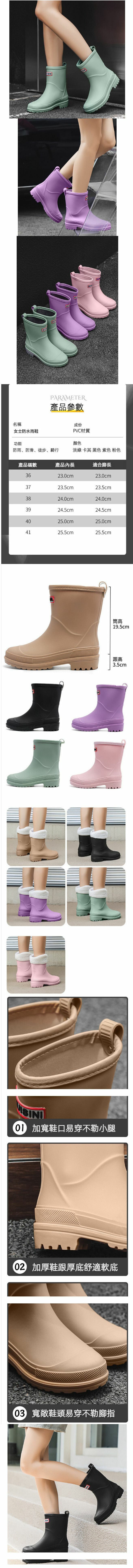 【特價品】時尚中筒防滑雨鞋(卡其色)【38碼】