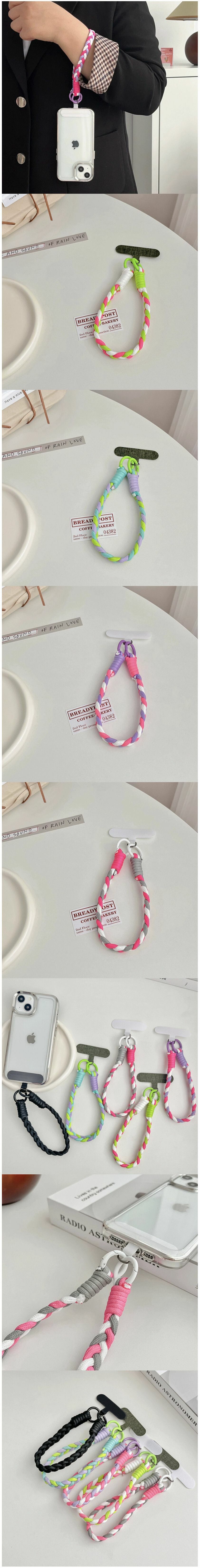【特價品】手機掛繩(【ab04】白黃綠+白色小布片)