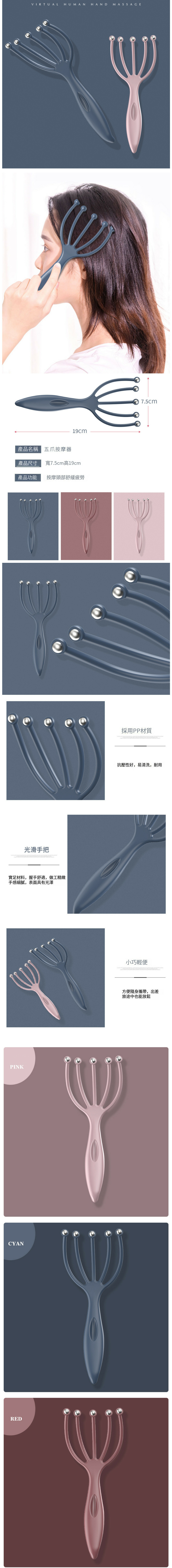 【特價品】小鋼球頭皮按摩爪 舒筋活絡 促進血液運行 防脫髮 (1件西柚粉-五爪按摩器)