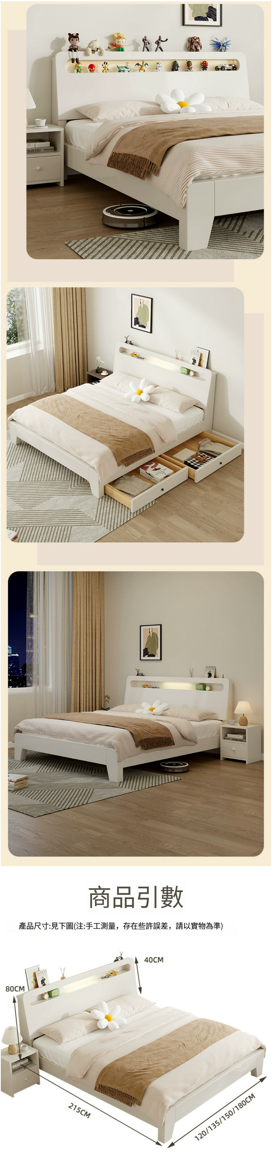 (特價品)實木床--簡約忌廉風床架【暖白色】單床+床頭櫃x2(1200mm*2000mm)