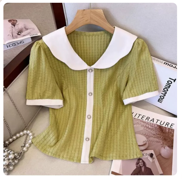 熱賣拼接上衣娃娃領襯衫(綠色 尺碼:S-3XL)(下單後請聯絡客服確認發貨尺碼)