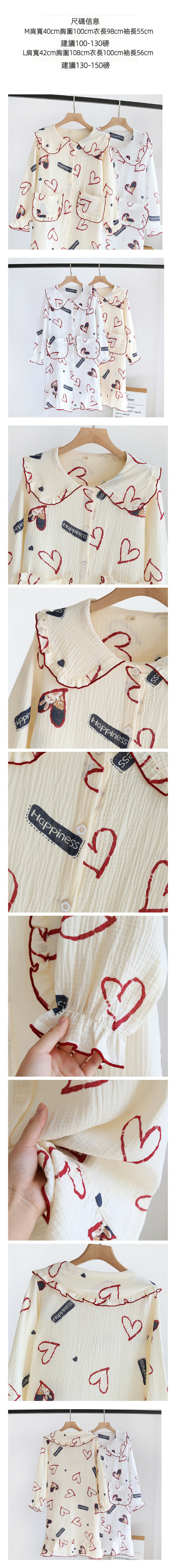 熱賣春秋季縐布長袖睡裙(LH白色熊和兔子)【M-L碼】【下單後聯絡客服確認發貨尺碼】