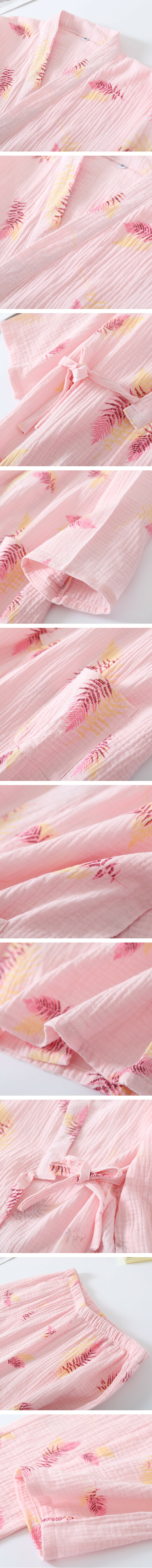 新款春秋季雙層紗布和服睡衣(LJ藍色葉子)【M-L碼】【下單後聯絡客服確認發貨尺碼】