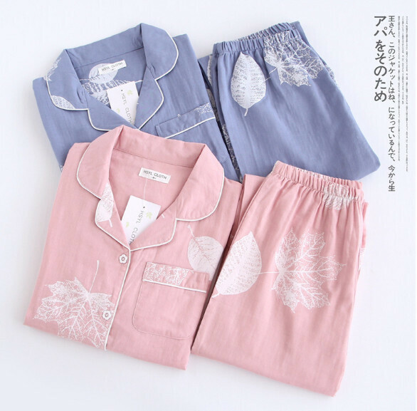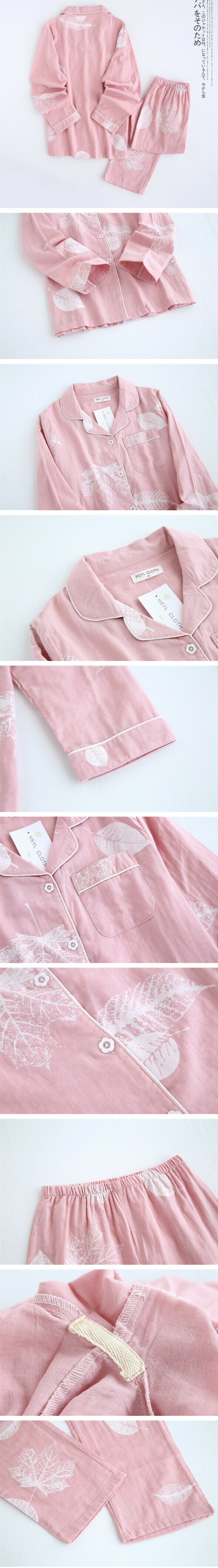 爆款春秋季雙層紗布長袖長褲睡衣套裝(粉色)【M-XL碼】【下單後聯絡客服確認發貨尺碼】