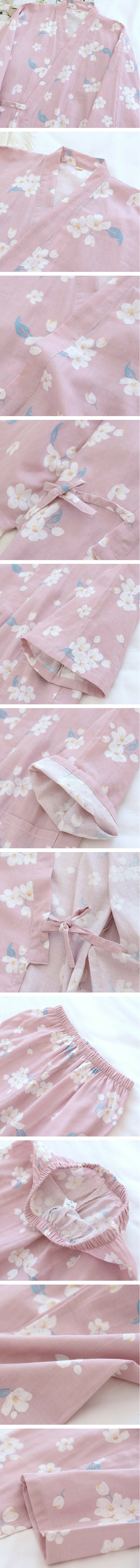 新款春秋季薄款全棉紗布和服睡衣(LH卡其櫻花)【M-XL碼】【下單後聯絡客服確認發貨尺碼】