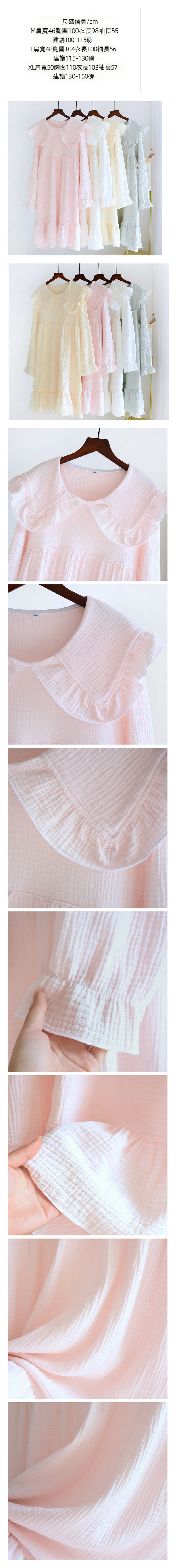 熱賣春秋季薄款大翻領縐布長袖睡裙(LH粉色)【M-XL碼】【下單後聯絡客服確認發貨尺碼】