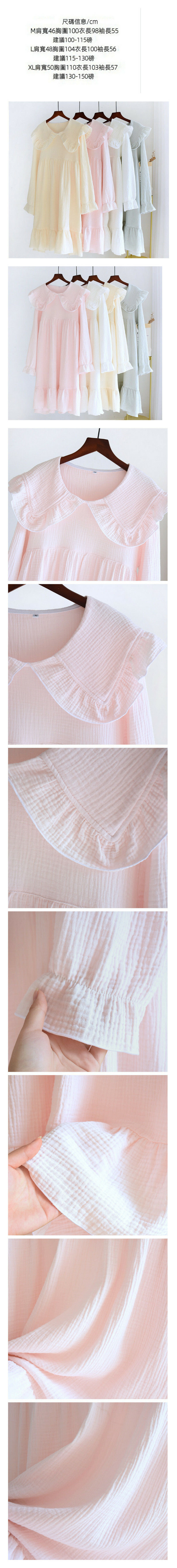 熱賣春秋季薄款大翻領縐布長袖睡裙(LH白色)【M-XL碼】【下單後聯絡客服確認發貨尺碼】