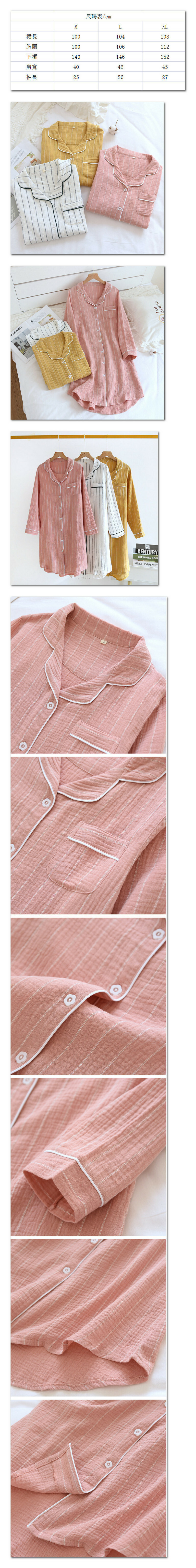 熱賣春夏季雙層紗布長袖睡裙(LYZ黃色寬條紋)【M-XL碼】【下單後聯絡客服確認發貨尺碼】