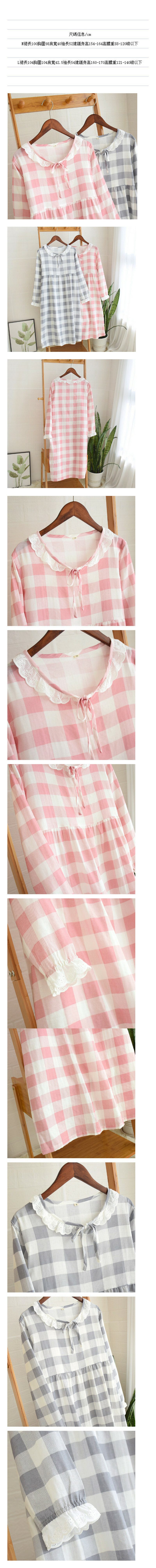 激抵春夏季雙層紗布睡裙(灰大白格子)【M-L碼】【下單後聯絡客服確認發貨尺碼】