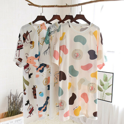 新款春夏季寬鬆休閒睡裙(白底胡蘿蔔)【M-L碼】【下單後聯絡客服確認發貨尺碼】